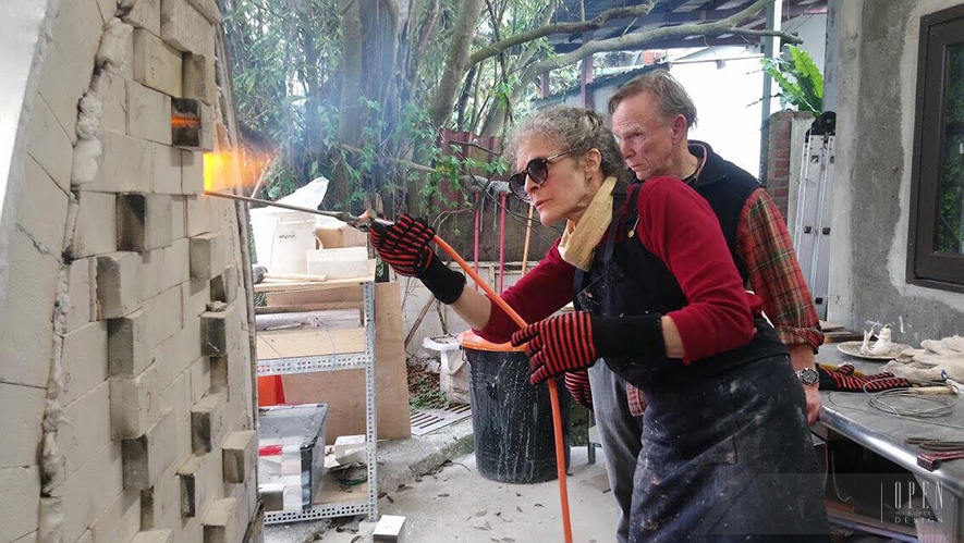 (圖)雲森陶陶邀請多位國際陶藝家進行技法等交流,圖為英國蘇打燒大師Ruthanne Tudball。圖翻攝雲森陶陶工作室臉書。Q:雲森陶陶的駐村藝術家,唯一條件為「要無私地分享技術與經驗」,想請David創辦人分享為什麼要以此要素,作為駐村藝術家的條件?