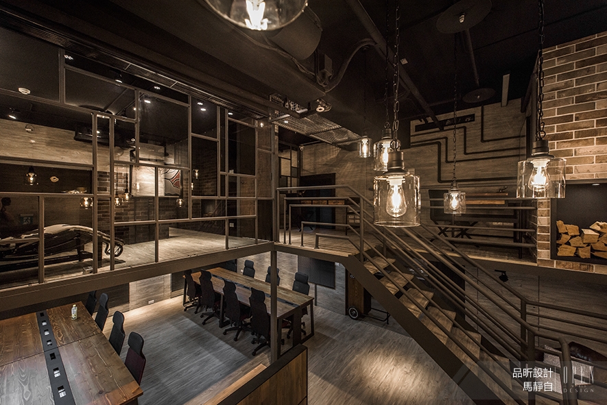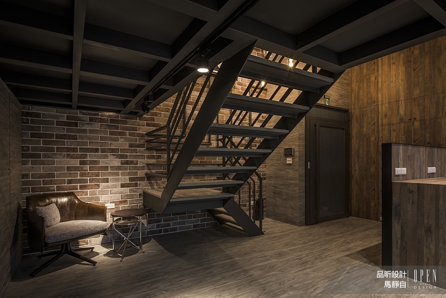▲順延黑鐵樓梯循徑而上,途經的仿文化石磚牆、金屬管線、壁爐造型,無一不發散醇厚的懷舊藝韻;鄰接暖爐的原木桌特別定位為洽談兼休憩區,供內部人員放鬆憩息,也讓員工與主管談話時不必進入辦公室,雙方得以輕鬆舒適的心情交談。