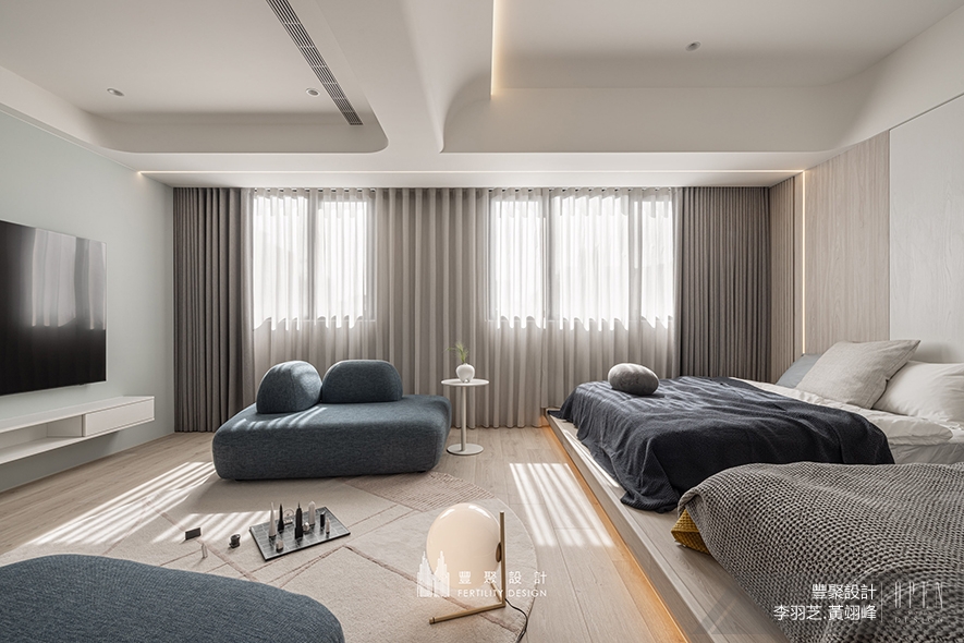 通常客變設計至完成交屋,快則兩到三年,久則四、五年。總監們表示,不管是設計師或客戶,都很容易在討論設計時僅考慮到接洽當下所需的機能,不小心忽略至建案完成期間可能的需求變化──也許是家中新增了小生命,或是兒女結婚有新家人要入住或搬出;這些可能性,豐聚團隊於客變時即以細膩的心思全面兼顧,透過建議業主預留數個多功能空間,靈活應對未來的不確定性。