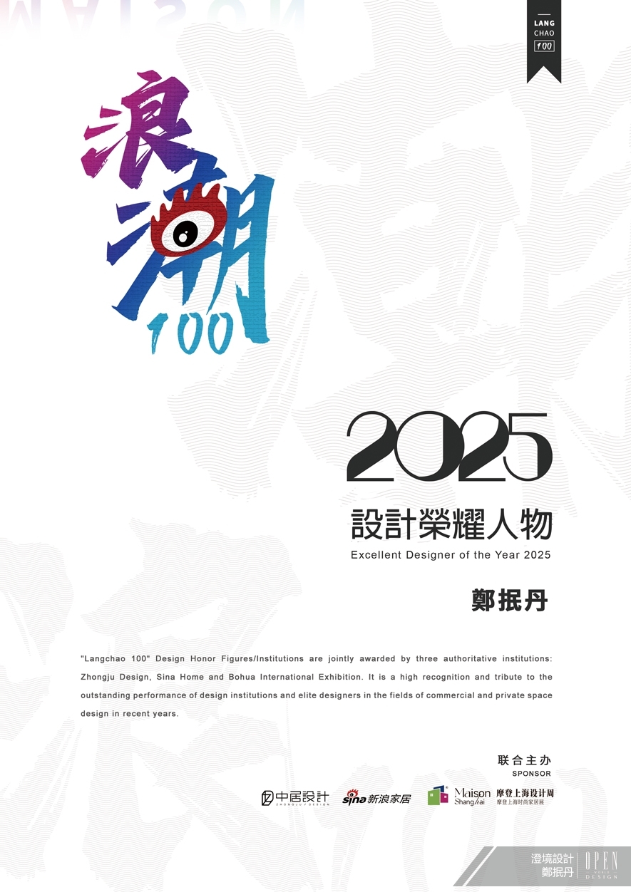 澄境設計 設計總監 鄭抿丹 自2013年創立公司以來,始終堅守品牌初心,不將設計視為單純的技術展現或風格堆砌,而是以誠摯的態度深度傾聽每一位業主的生活脈絡與個人喜好,從中精準構築理想場景,致力實現專屬於居者的夢想家居;這份對設計本質的堅持與專業,讓澄境設計屢獲國際設計界肯定,包括美國MUSE Design Awards、London Design Awards等多項大獎,憑藉其深厚設計實力與真誠服務精神,鄭總監榮獲2025浪潮100榮耀設計獎中的「設計榮耀人物」殊榮,讓澄境設計的人本美學在國際舞臺綻放光芒!