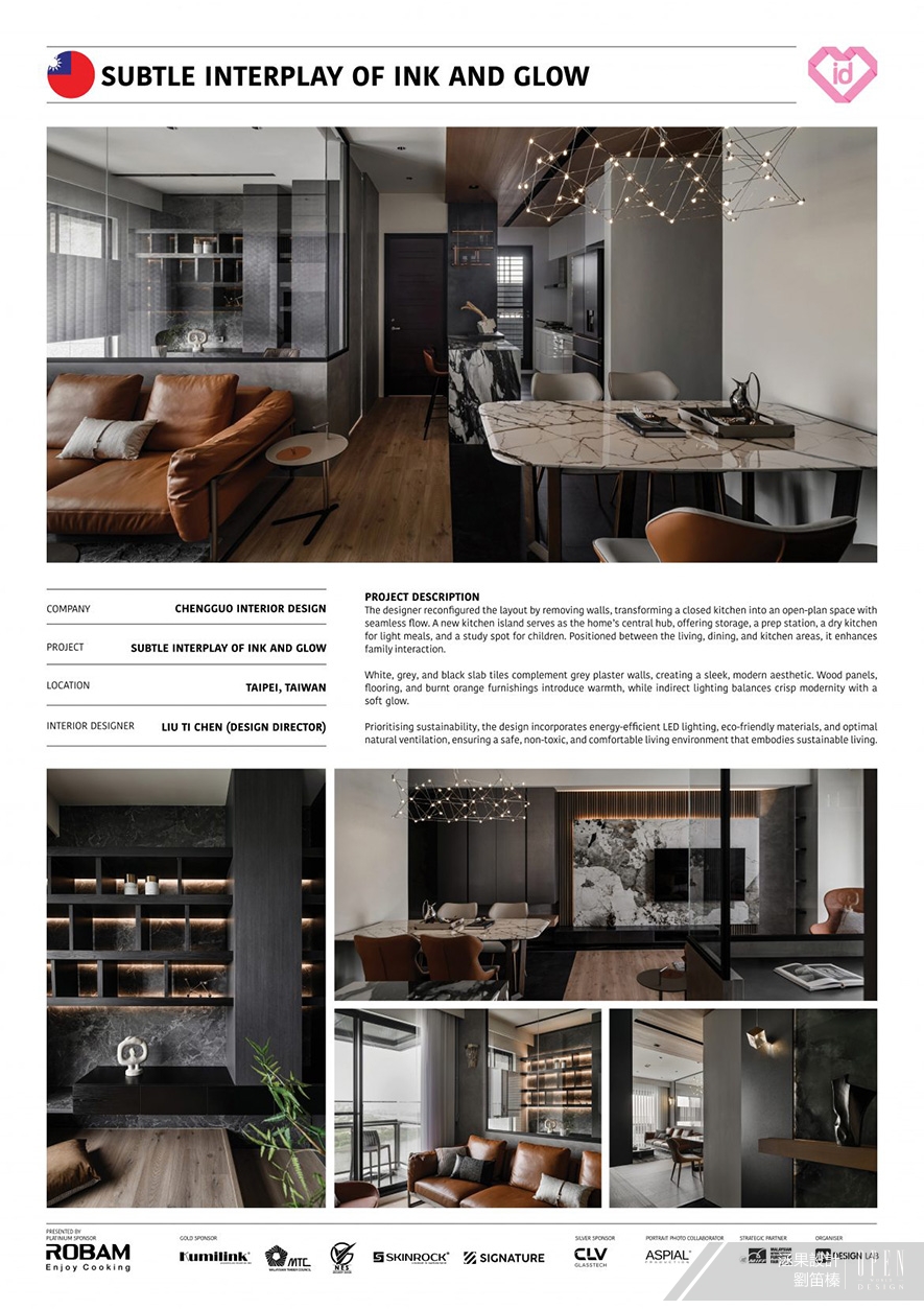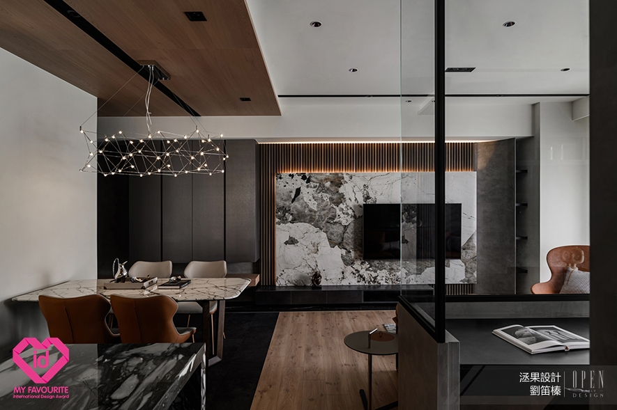 洆果設計 設計總監 劉笛榛 以精湛的空間整合技巧,於家宅《潤墨輕光》中巧妙移除原有隔牆,打造開放式餐廚格局,並設置多功能室作為核心生活場域之一,不僅豐富儲納機能,更促進家庭成員間的情感交流,營造溫馨活力的家居環境,獲 2025 My Favourite International Design Award評審團高度肯定,成功入圍賽事住宅空間類獎項!關於馬來西亞My Favourite International Design Award