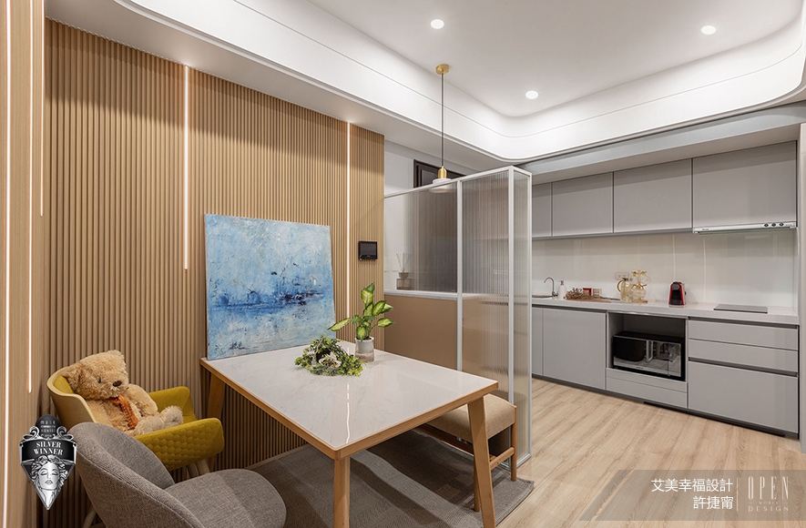美國 MUSE Design Awards致力於發掘全球設計繆思,涵蓋建築、室內、時尚等領域。2026年共吸引來自124國、超過十萬件作品參賽,由200多位專業評審嚴格遴選,為國際設計界的重要指標。在作為設計師自用示範宅兼辦事處的《光落之境》中,艾美幸福設計 設計總監 許捷甯 活用大面積長虹玻璃、鏡面及大理石等建材,透過其反射特性延展空間縱深感,配合搭載多樣彈性功能的吧檯、榻榻米區,以實際作品達至宣傳品牌可將小宅化作視野開闊、機能充沛場域的效果;貼合示範宅和辦事處定位的匠心設計,亦緊扣賽事著重創新巧思的核心理念,成功贏得「銀獎」佳績!